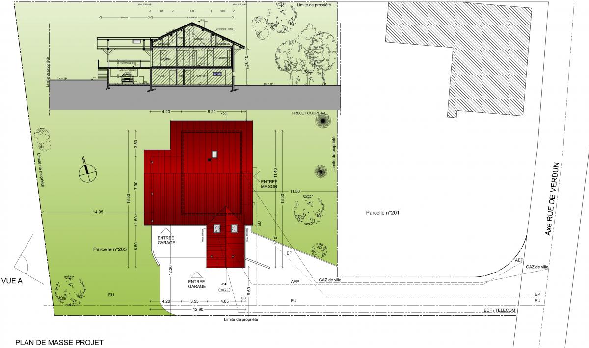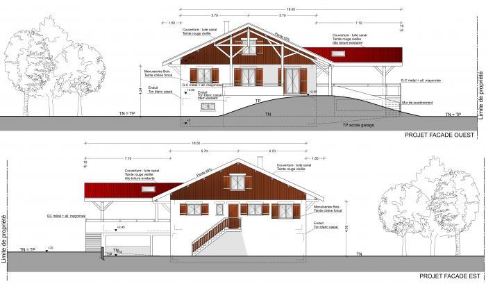La maison se situe sur la commune de Rumilly en Haute-Savoie. Le projet consiste en la création d’une terrasse faisant office d’abri voiture également en façade Sud et d’un garage recouvert d’une toiture terrasse accessible en façade Ouest. La maison sur 3 niveaux avec balcon a conforté l’idée du projet de création de 2 terrasses et par extension, d’abris voiture (un ouvert, un fermé). La terrasse Sud est crée dans le but de prolonger le balcon existant et donne accès directement à la cuisine, objectif du Maître d’Ouvrage. La seconde terrasse permet de profiter du jardin et est l’aboutissement du balcon existant côté Ouest. Cette terrasse a pour objet de créer un garage fermé rajoutant ainsi une place de stationnement couverte fermée. Les deux terrasses sont recouvertes par une toiture dont une en prolongement de l'existant.